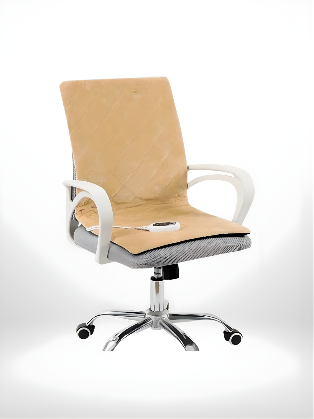 Tapis chauffant électrique pour chaise avec 8 niveaux de chaleur. Chaleur constante et confort optimal pour le dos et l’assise au bureau ou à la maison.